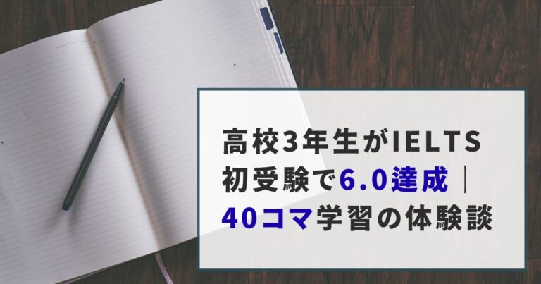 この記事では、40コマの受講で初受験6.0(L5.0 / R5.5 / W6.0 / S6.5)を達成した高校3年生・TomokiさんのIELTS学習の振り返りをご紹介します。 お名前 Tomoki 受講時年齢 高校3年 … 続きを読む 高校3年生がIELTS初受験で6.0達成|40コマ学習の体験談
