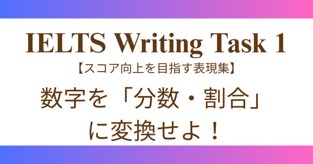 IELTSライティングのフレーズ図鑑(Task1編):数字で差がつく「分数」の言い換え 今日のトピック:数字を「分数・割合」に変換せよ! 💡 プロの一言アドバイス 後ろの名詞との「相性(コロケーション)」に全集中! グラ