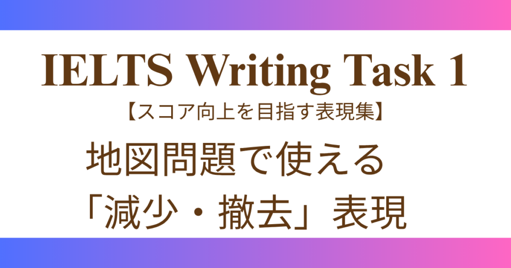 今日のトピック:減少・撤去を表す表現 💡 プロの一言アドバイス 「受動態」を味方につけよう! マップの問題で「建物が撤去された」と言うとき、建物は自分から消えませんよね?必ず「be + 過去分詞」の受動態を使いましょう。 […]