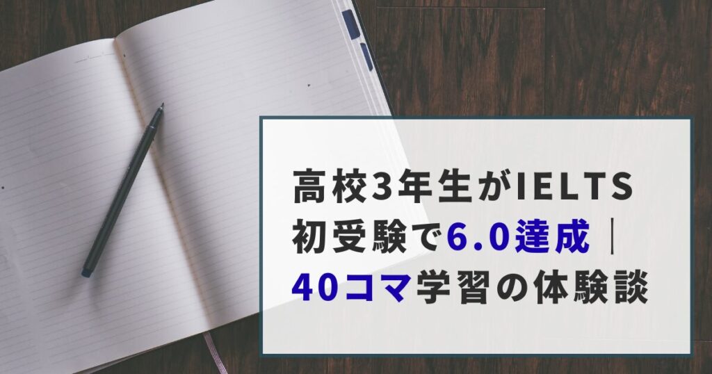 この記事では、40コマの受講で初受験6.0(L5.0 / R5.5 / W6.0 / S6.5)を達成した高校3年生・TomokiさんのIELTS学習の振り返りをご紹介します。 お名前 Tomoki 受講時年齢 高校3年