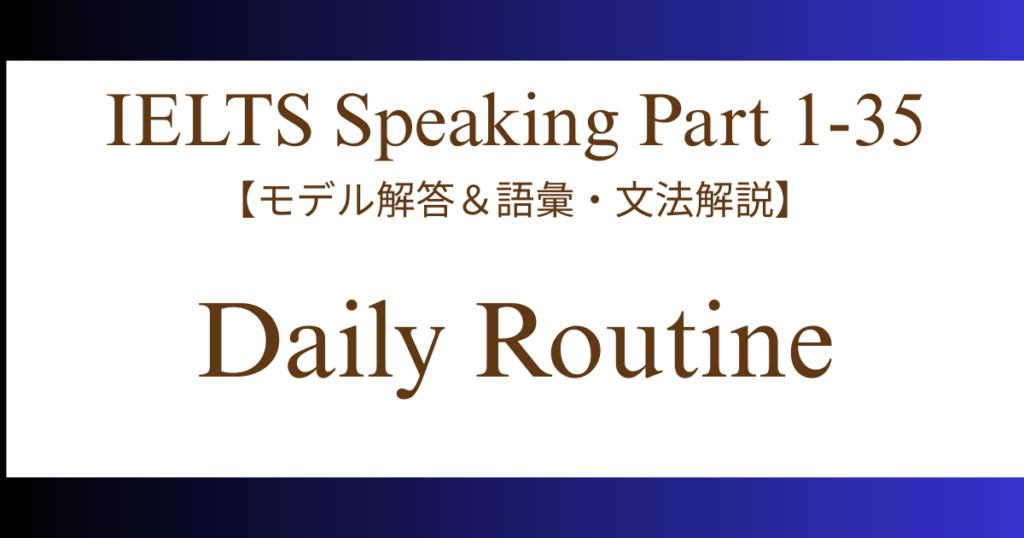 このシリーズでは、IELTS Speaking Part 1 の定番質問に対する自然なモデル解答を紹介しています。第35回のテーマは「Daily Routine(毎日の生活習慣)」です。 💬 質問とモデル解答 Quest