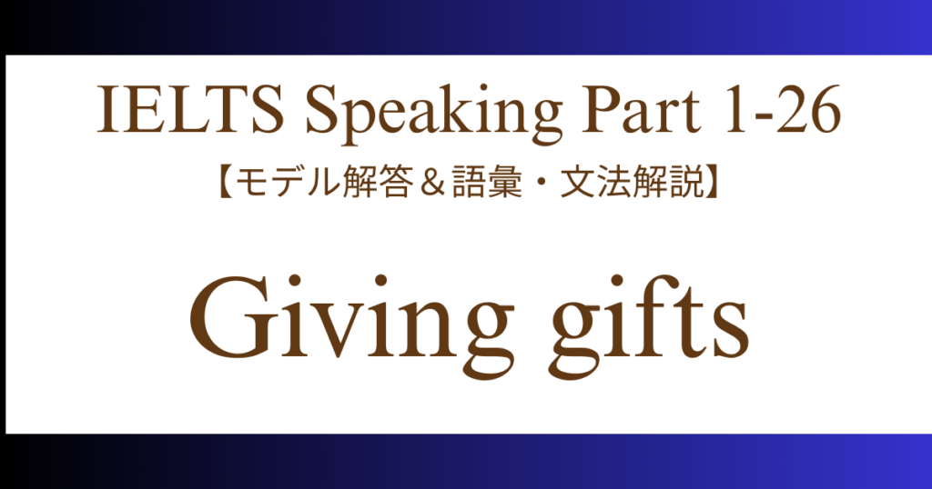 このシリーズでは、IELTS Speaking Part 1 の定番質問に対する自然なモデル解答を紹介しています。第26回のテーマは「Giving Gifts(贈り物)」です。 💬 質問とモデル解答 Question M
