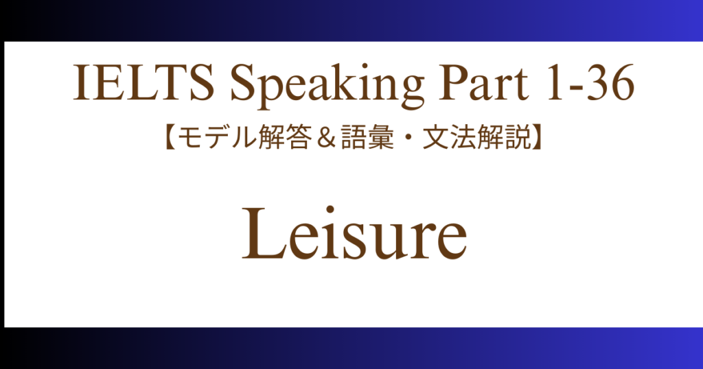 このシリーズでは、IELTS Speaking Part 1 の定番質問に対する自然なモデル解答を紹介しています。第36回のテーマは「Leisure(余暇・趣味)」です。 💬 質問とモデル解答 Question Mode