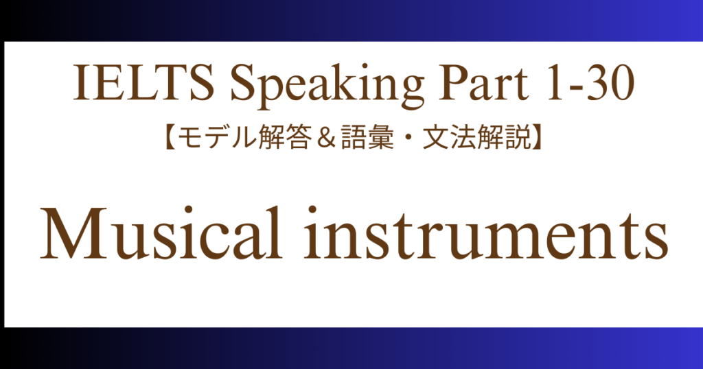 このシリーズでは、IELTS Speaking Part 1 の定番質問に対する自然なモデル解答を紹介しています。第30回のテーマは「Musical Instruments(楽器)」です。 💬 質問とモデル解答 Ques