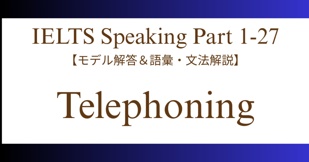 このシリーズでは、IELTS Speaking Part 1 の定番質問に対する自然なモデル解答を紹介しています。 第27回のテーマは「Telephoning(電話)」です。 💬 質問とモデル解答 Question Mo