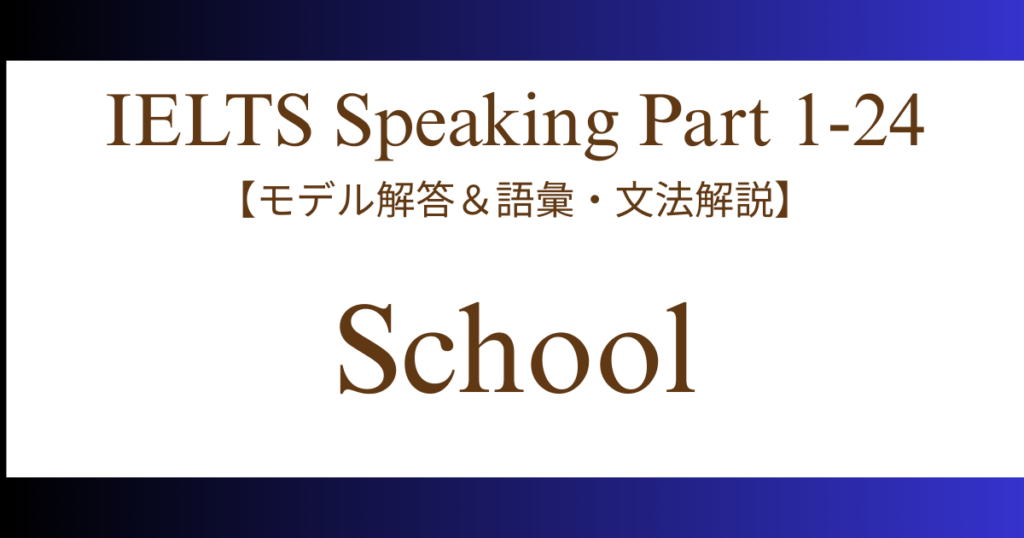 このシリーズでは、IELTS Speaking Part 1 の定番質問に対する自然なモデル解答を紹介しています。第24回のテーマは「School(学校)」です。 💬 質問とモデル解答 Question Model An