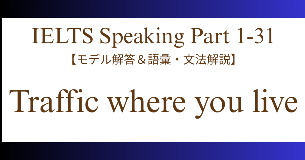このシリーズでは、IELTS Speaking Part 1 の定番質問に対する自然なモデル解答を紹介しています。第31回のテーマは「Traffic where you live(地域の交通事情)」です。 💬 質問とモデ