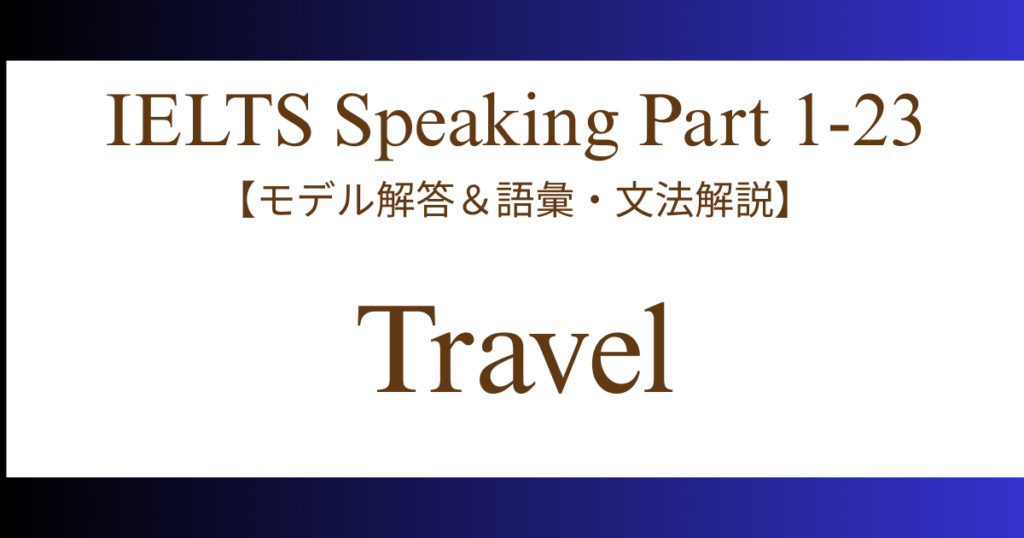 このシリーズでは、IELTS Speaking Part 1 の定番質問に対する自然なモデル解答を紹介しています。第22回のテーマは「Travel(旅行)」です。 💬 質問とモデル解答 Question Model An